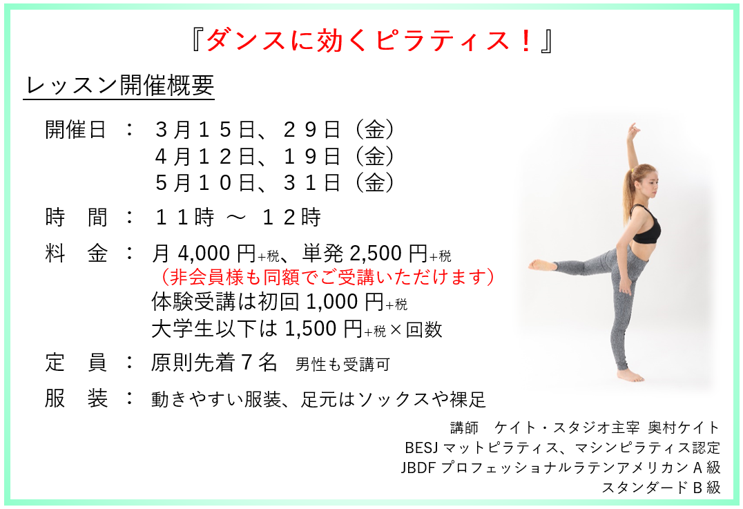 これまでピラティスを受けられなかった方、Avid Dance & Body Design の会員でない方のご参加も大歓迎です!