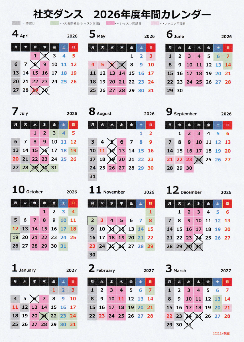 ※レッスン状況、競技会、その他イベント等により異なる場合あり